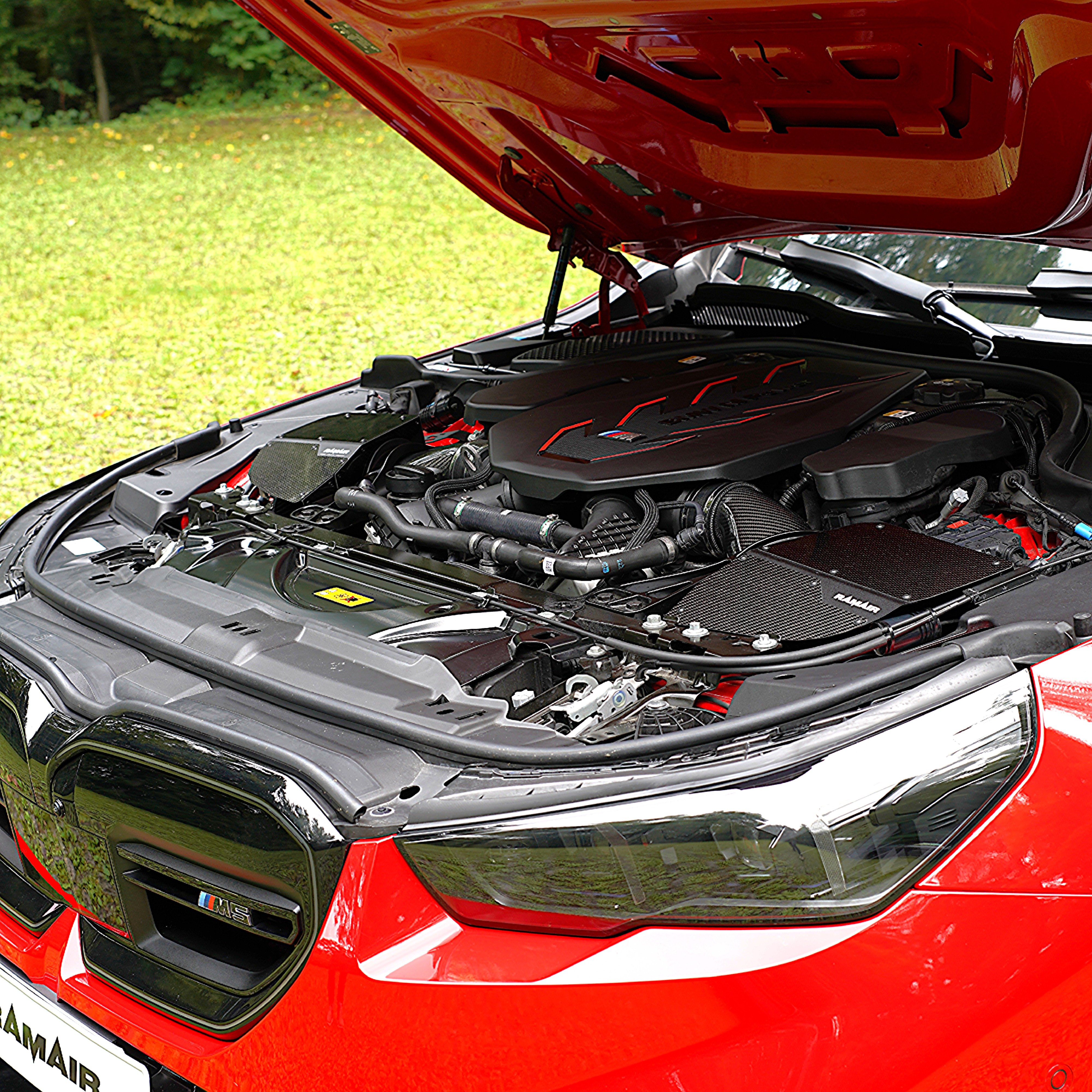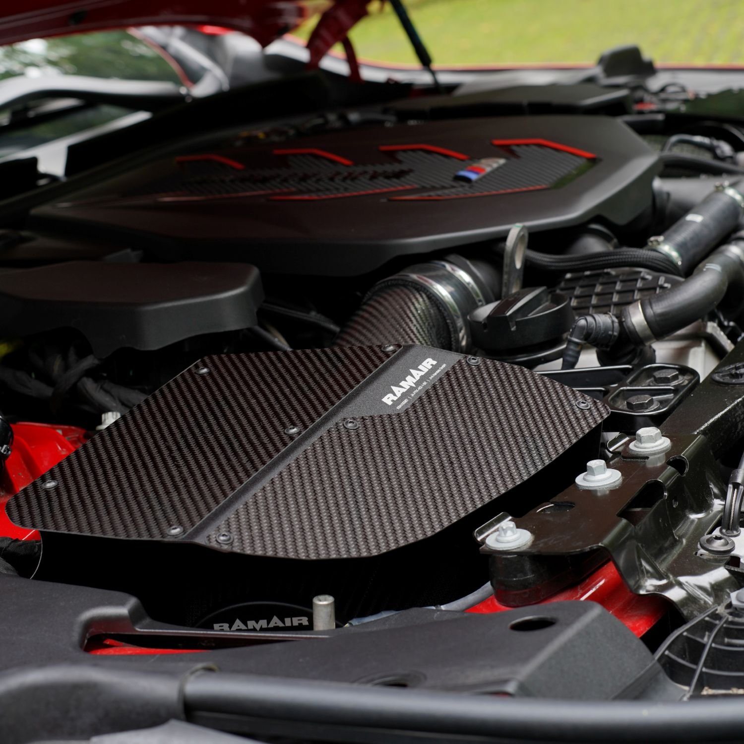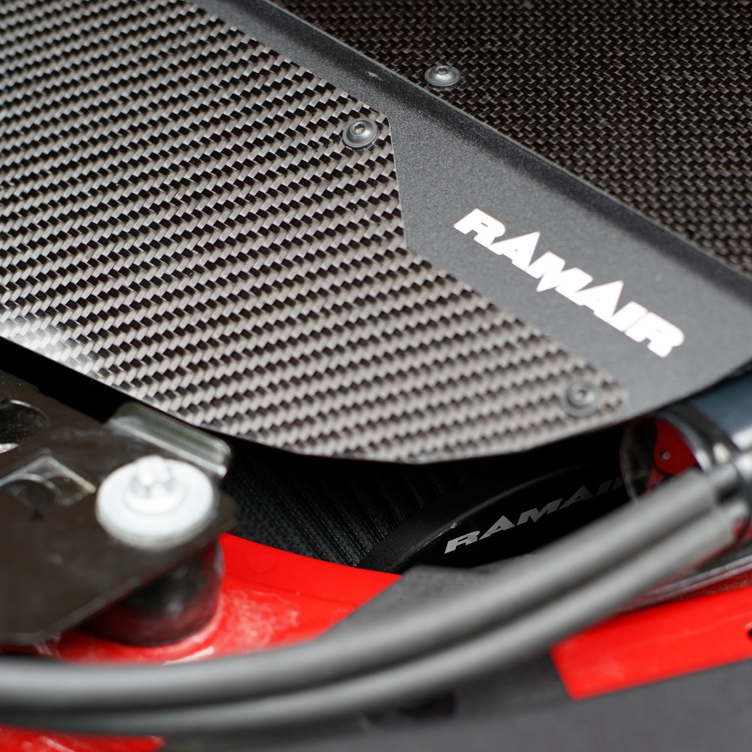 Das Ramair Proram Series Ansaugkit PRK-462-BK verleiht dem M5 nicht nur einen wahnsinnig kraftvollen Sound, sondern wertet auch gleich die Optik des Motorraums auf. Das Kit umfasst neben den beiden konischen Proram-Filtern auch Carbon-Ansaugrohre mit glänzendem Finish und Carbon-Abdeckungen für die Hitzeschilde.